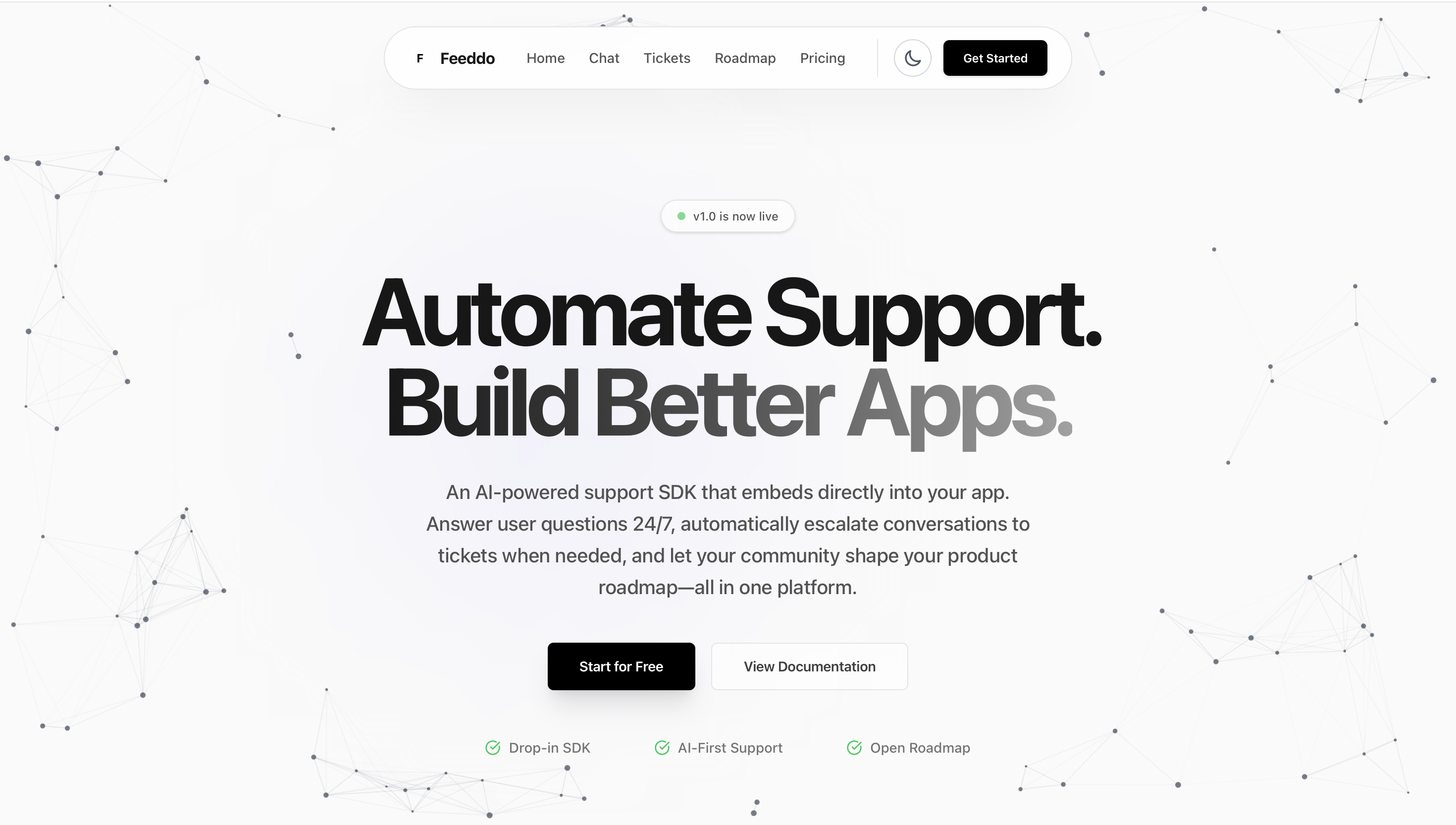 Feeddo is an AI-powered customer support SDK designed to help mobile app developers provide exceptional support experiences. We believe that great support shouldn't require building complex infrastructure from scratch.